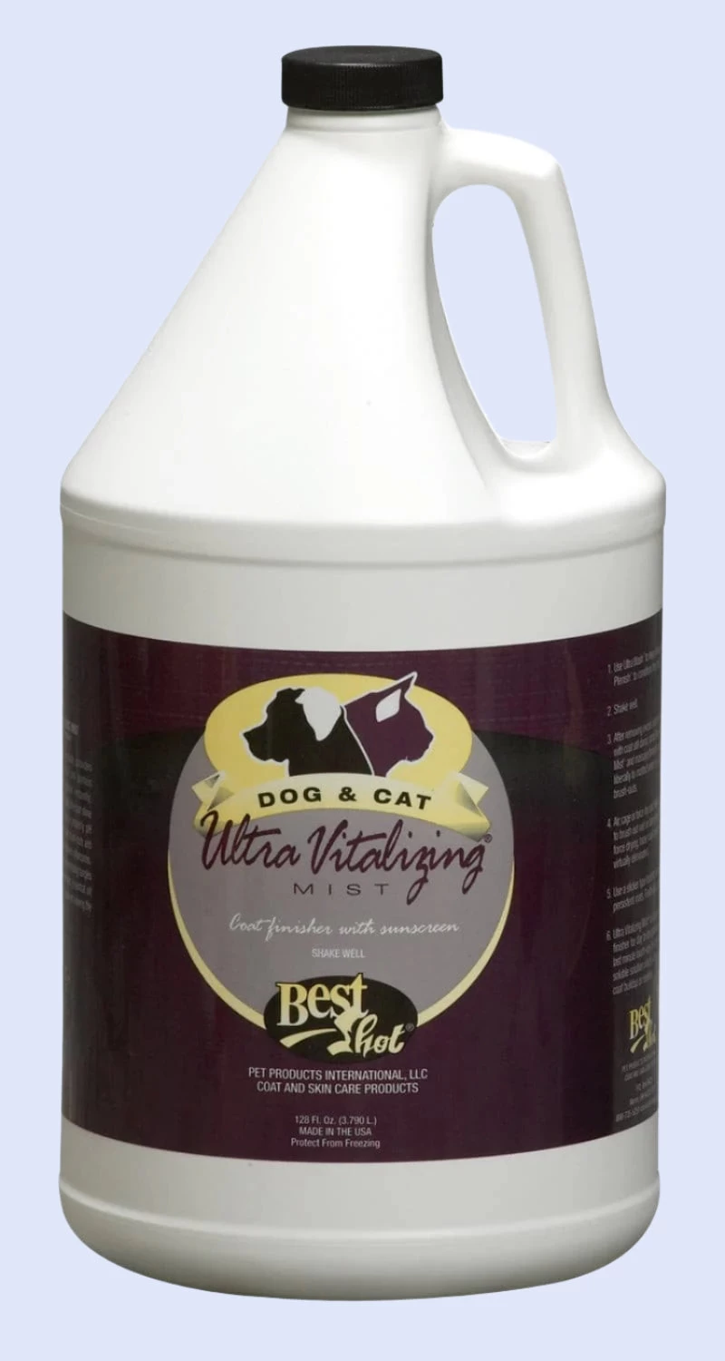 This spray on – leave in conditioner provides detangling, moisture, and protein treatments for the coat and skin which occur instantly. Contains sunscreen and is great for brush-outs between shampoos. Protects and seals the coat shine and adds amazing shine.
