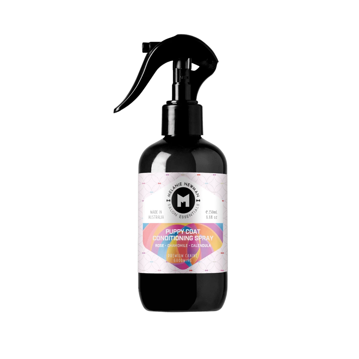 A lightweight leave in conditioner / de tangling spray that hydrates without weighing the coat down, can be used on a wet or dry coat and during the bathing process. Melanie Newman Salon Essentials Puppy collection is formulated for all breeds and coat types, with odour fighting and calming properties through the blend of natural essential oils , Aloe Vera leaf juice, licorice root and coconut oil.