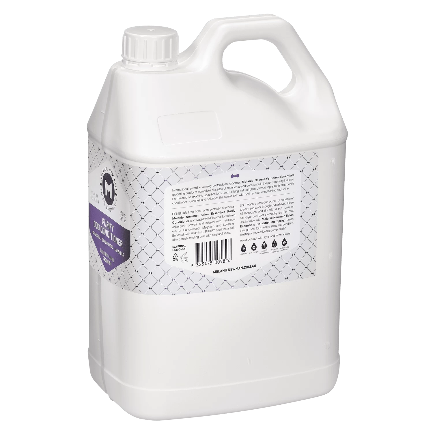 Benefits: Free from harsh synthetic chemicals, Melanie Newman Salon Essentials Purify Conditioner is activated with Charcoal for its toxin adsorption powers and infused with essential oils of Sandalwood, Marjoram and Lavender. Enriched with Vitamin E, PURIFY provides a soft, silky & fresh smelling coat with a natural shine.