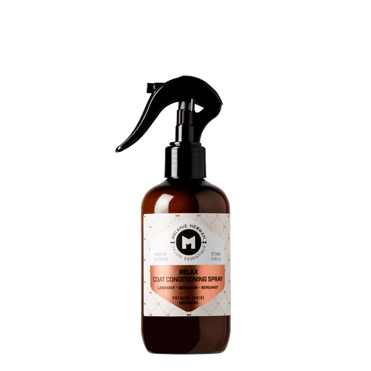 Free from harsh synthetic chemicals, Melanie Newman Salon Essentials Conditioning Spray contains vitamin enriched moisturising oils and organic essential oils of Lavender, Geranium and Bergamot, providing naturally scented, tangle-free, healthy coat with a natural shine.