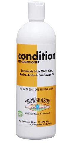 Softness made possible by ultra rich conditioners. Surrounds hair with Aloe, Amino Acids & Sunflower Oil. Dilutes 16:1. Cologne Match: Showseason® Spring Rain. For Use On Dogs, Cats, Puppies & Kittens.