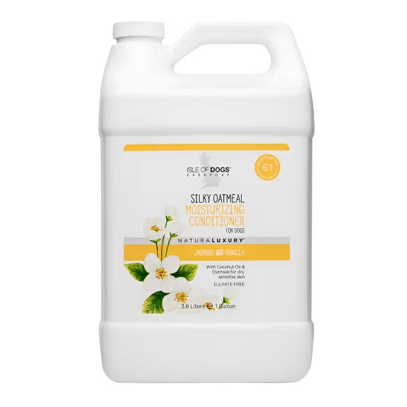 A mild and gentle conditioner that will help create a soft and silky feel to the coat. Can be used on any breed. Oatmeal and Jojoba help soothe dry skin. Featuring Isle of Dogs signature fragrance Jasmine and Vanilla with natural odor neutralizers.