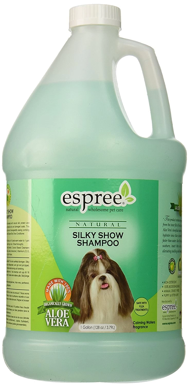 Espreeβs Silky Show Shampoo is formulated with natural silk protein and safflower oil to clean, condition and moisturize dry and damaged coats. This luxurious formula improves texture, shine and manageability easing combing and brushing. For Best Results use with Espree Silky Show Conditioner.
